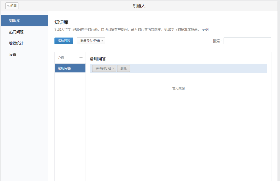 2.快捷回复:企业可为接待人员统一配置快捷回复,接待人员还可自己添加,添加后,接待人员可在与客户的聊天中使用;3.聊天工具栏:企业可将应用页面配置到聊天工具栏,方便接待人员在与微信用户的客服聊天中查看和使用,提高服务效率;4.机器人:您可以将客户常见的问题录入其中,机器人将学习知识库中的问题,自动回复客户提问。录入的问答内容越多,机器学习的精准度越高;