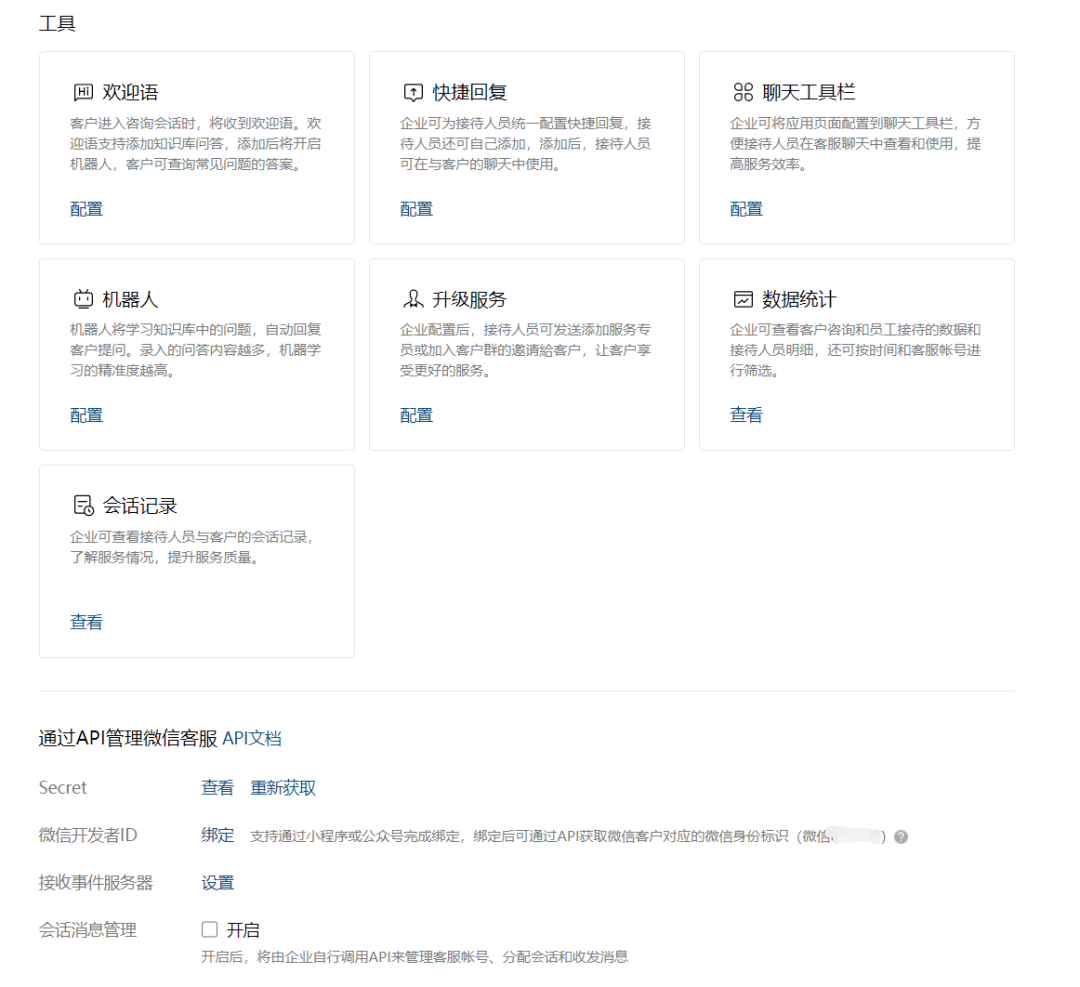 6.数据统计:在数据统计中您可以看到客户咨询与人工接待等相关数据,并呈现不同日期的图表,您也可以在其中转跳到机器人接待的数据情况;7.会话记录:在其中可查看接待人员与客户的会话记录,了解服务情况,提升服务质量;8.通过API管理微信客服:可以在企业微信里通过API来管理微信客服帐号、分配客服会话和收发客服消息等,详细教程在API文档中可进行了解;最后总结一下,首先我们进入企业微信的后台管理中,在应用管理的微信客服中就可以设置啦!在其中我们可以设置不同的功能、接入场景以及工具的应用,设置完善后就可以啦!
