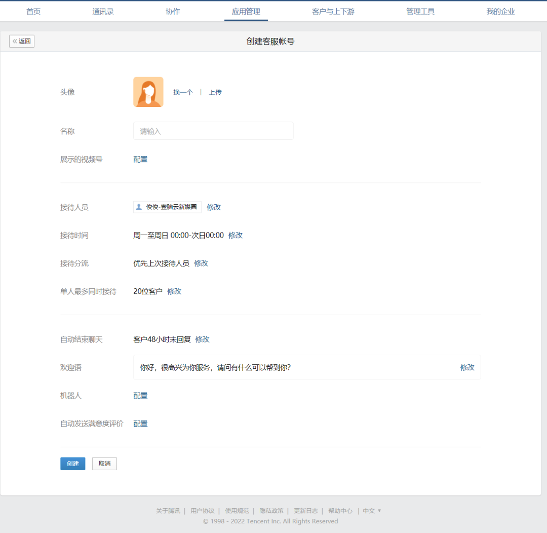 2.点击创建账号,我们就可以进行客服身份的创建了!