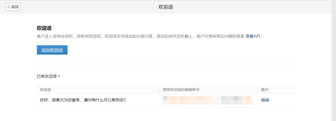 1.欢迎语:客户进入咨询会话时,将收到欢迎语。可以点击添加欢迎语,为不同客服进行设置;