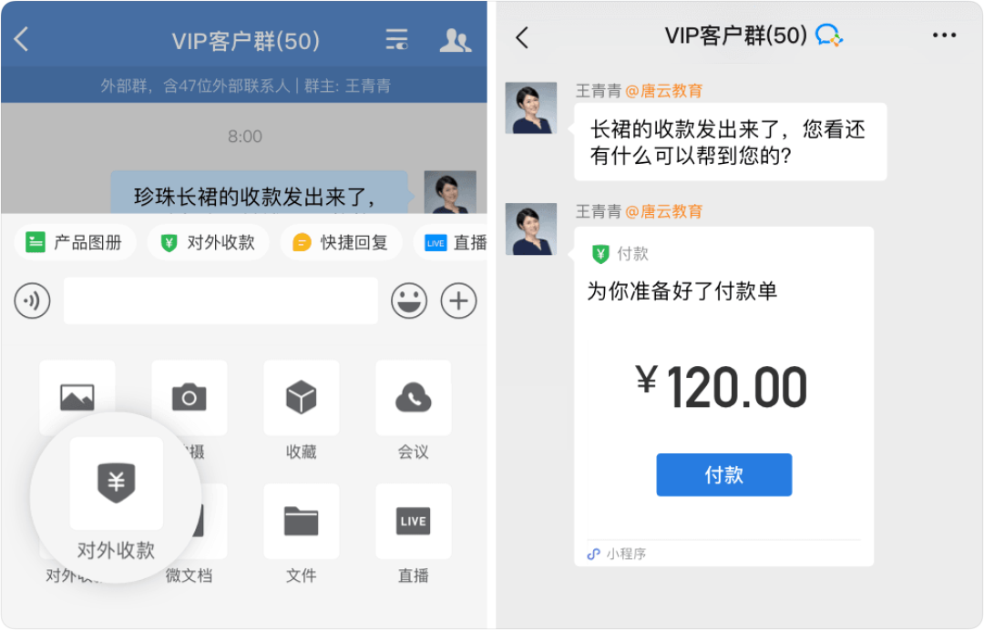 以前,在线上付款时,顾客一般是直接转账给导购,或者扫导购发来的付款码,但心中难免会有疑虑:转账给这个人靠谱吗?我的钱是打给这个导购个人了,还是打给这个企业了?