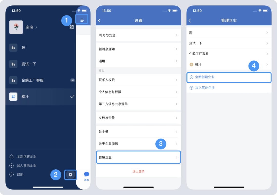 近几年,企业微信得到了各行各业越来越多企业的认可。对内面向团队,它可以用来做组织管理,比如文档、日程、会议等协作工具及打卡、审批等OA应用。对外面向客户,可以提供服务,如添加客户微信后,在私聊、社群、朋友圈中触达客户。企业微信最大的优势,就是跟微信的绑定。毕竟,几乎每个人都有自己的微信,通过企微触达客户,非常方便,也最符合客户日常使用习惯。但是,很多刚接触企微的企业,可能不太熟悉企微的使用,比如如何注册认证、哪些功能要付费使用,等等。在企业微信官网(work.weixin.qq.com)点击“立即注册”。注册时,需要填写企业信息(企业名称、行业类型、员工规模)、管理员信息(管理员姓名、管理员手机号、短信验证码、管理员绑定了实名银卡的微信进行扫码),同意并遵守《腾讯企业微信服务协议》《隐私政策》《红包使用授权协议》协议。如下图所示。路径①:手机端->消息界面->左上角三横