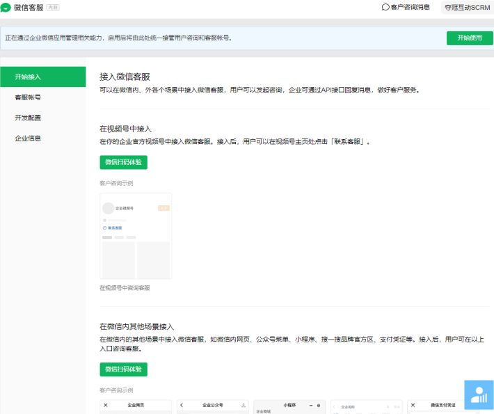 9月底企业微信官方上线了【微信客服】功能,并快速迭代多次,那什么是微信客服功能呢?和公众号、个人微信、企业微信一样,微信客服有自己的官网,“可以在微信内、外各个场景中接入微信客服,用户可以发起咨询,企业可通过API接口回复消息,做好客户服务。”丰富的接入口 可以在视频号、搜一搜、支付凭证、网页等微信内和微信外场景接入微信客服,接待用户咨询