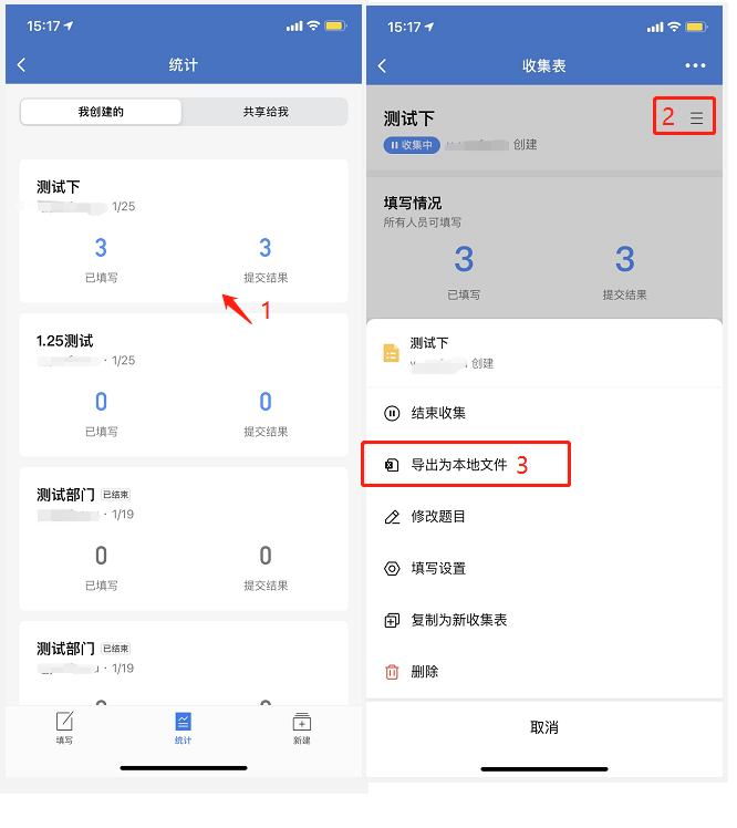 操作入口:在工作台-收集表-统计-查看统计详情右上角“三”-导出为本地文件。