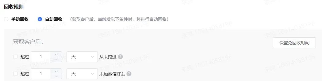 很多客户在销售第一次跟进时,是没有意向的,或者说是无法成交的。但这不代表这部分“未成交客户”没有价值。相反,经过统计,在很多企业,成交客户中都有相当一部分是第一次跟进无意向,但后续产生意向进而付费下单的。也就是说,首次沟通未成交的客户,如果后续不再继续跟进,大概率会造成客户流失,也会直接降低转化率。探马SCRM的“公海机制”,正是为了解决这个问题。在公海库中,企业可以按照不同的客户类型、客户阶段,设置不同的线索自动回收规则。比如,某个销售在7天内没有及时跟进某个客户,该客户将自动回收至公海,其他销售可以领取跟进。
