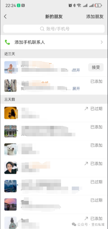 ⑤发送申请后,在企业微信的当前聊天窗口或联系人申请相关的列表区域中,可以看到 “已发送” 的提示信息。这表示添加联系人的申请已成功发送至达人或团长的个人微信端,商家 BD 这边的操作暂时完结,等待达人或团长的回应。达人或团长在其个人微信中,当有新的通讯录好友请求时,手机会收到消息提醒(一般为声音提示和屏幕顶部的通知栏消息)。点击通知栏消息或进入个人微信通讯录的 “新的朋友” 列表。