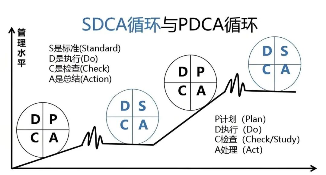 当稳定在一个水平上一段时间之后,再次采用PDCA循环进行改进,然后继续采用SDCA来固化。