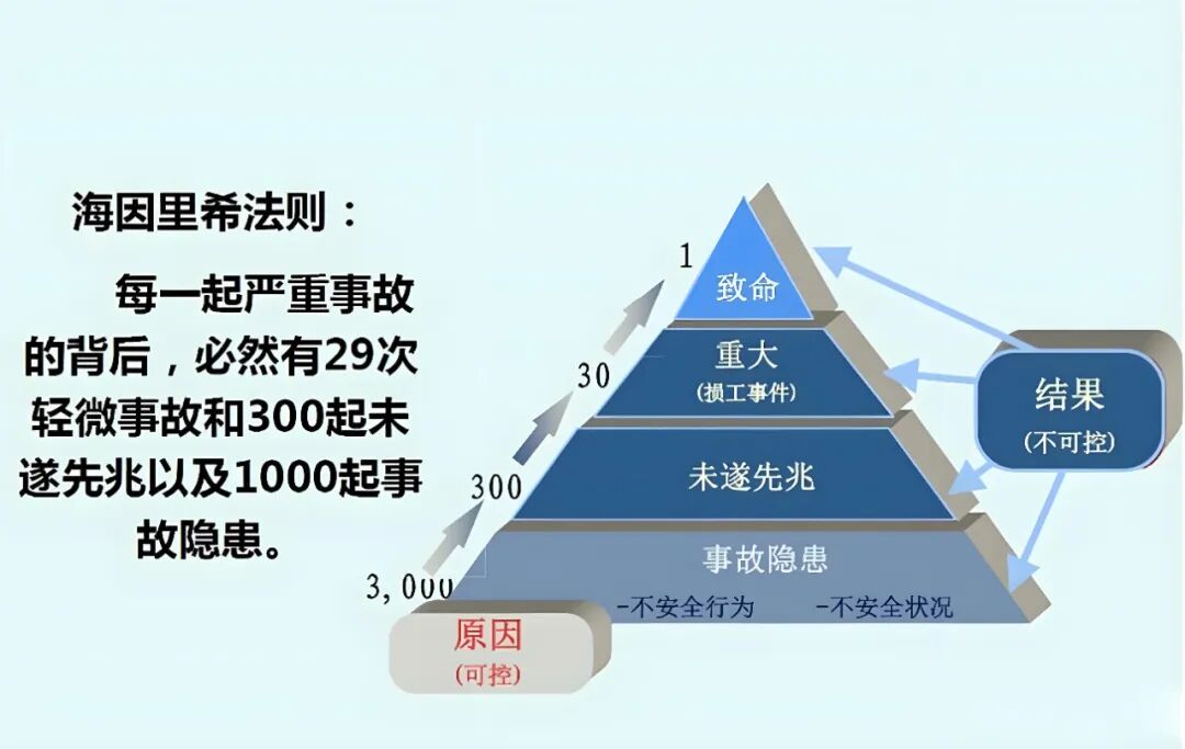 海因里希法则揭示了一个重要的安全管理理念:即小问题如果不被及时发现和解决,最终可能会演变成大问题。
