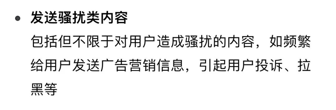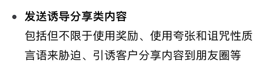 ② 与企业微信绑定的个人微信号出现了违规操作,企业微信也会被影响;③ 在企业微信中发送骚扰和诱导分享类内容,以及恶意添加外部联系人,引起用户投诉和拉黑等;我们看看规则: