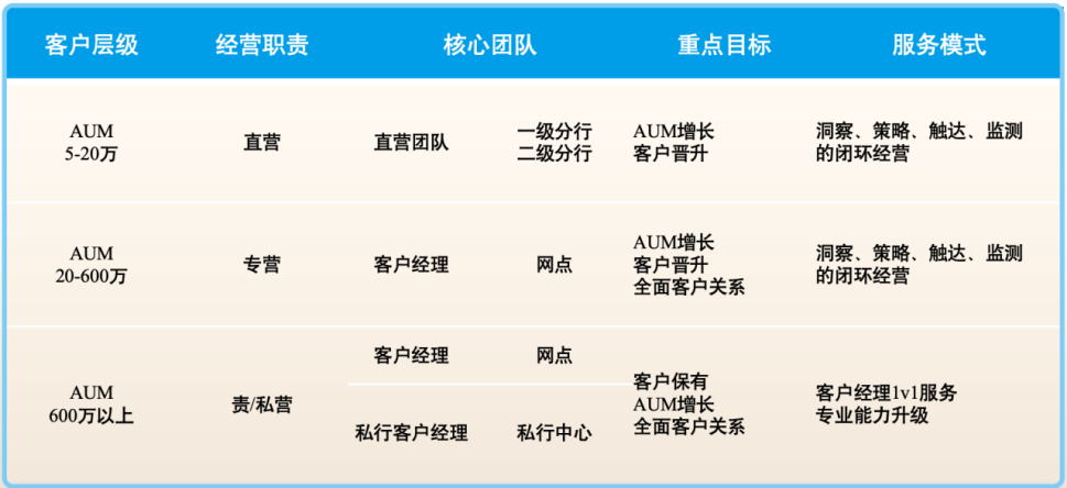 - 构建基于客户生命周期的权益与经营体系,追求客户活跃带来的AUM、资产、中收等综合产能的长效倍增。