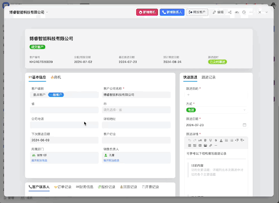 ToC的消费决策,快的话可以以“秒”计,但ToB的消费决策,从接触到签单,可能经历数轮需求调研、方案调整、价格谈判,短则数月,长则数年。这场持久战需要销售具有极大的耐心和毅力,否则客户随时可能“消失”。客户跟进则是贯彻始终的主线任务。说到客户跟进,客户跟进记录又是逃不开的命题。