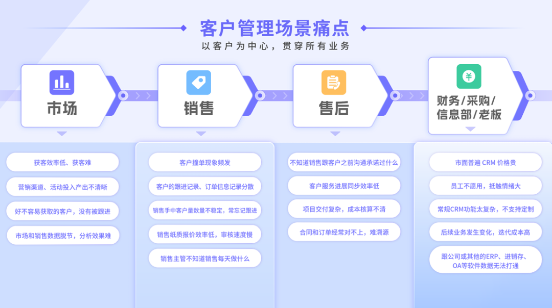 签单只是第一步,交付才是销售的“二次闯关”。交付质量好不好,能直接影响客户口碑和复购。为了降低交付风险,销售需要和其他部门协作,确保项目按时落地,但往往阻力重重。要想降低跨部门协作的阻力,企业可以通过CRM打通销售、交付、客服团队,实时同步项目进展。同时,识别交付中的潜在问题,比如资源不足、需求变更,提前制定预案,确保项目按时落地。